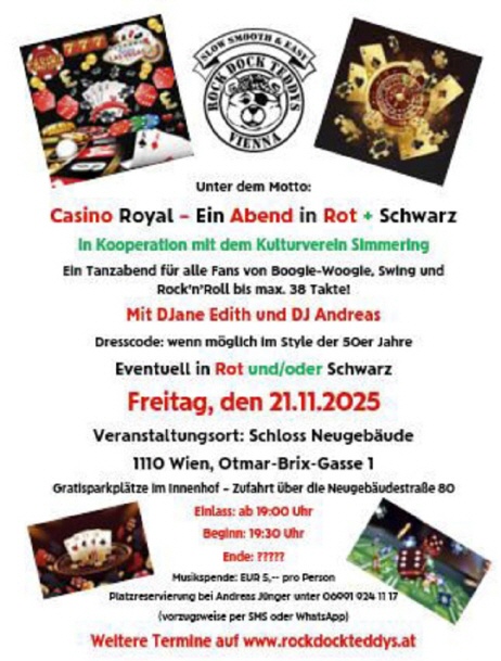 Am Freitag, den 21. November 2025, wird Boogie Woogie, Swing und Rock'nRoll bis max. 38 Takte ☜♬ gespielt.