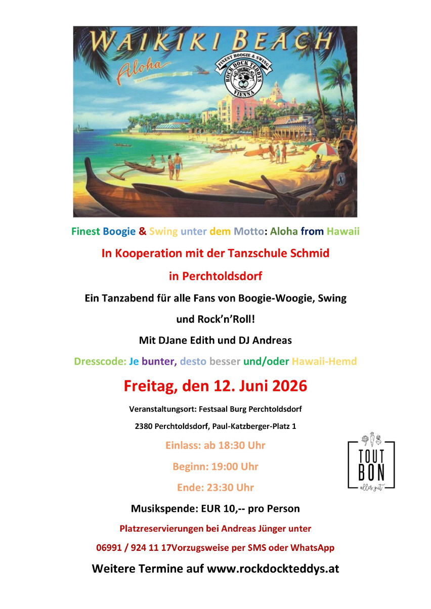 Info und Reservierung: Tel.: +43 1 869 47 94 / Mobil: +43 664 124 30 93, Email: office@tanzschule-schmid.at